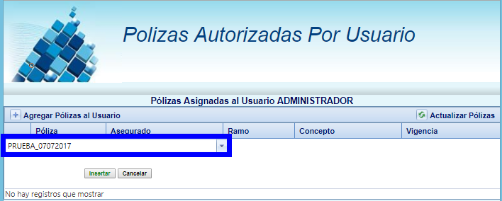 Nota: Si desea asignar más pólizas al usuario realice las indicaciones mencionadas en este apartado.