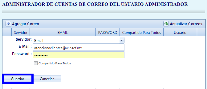 Si desea que la cuenta se visualice y utilice por cualquier usuario del sistema habilite la casilla de verificación <Compartido para Todos>.